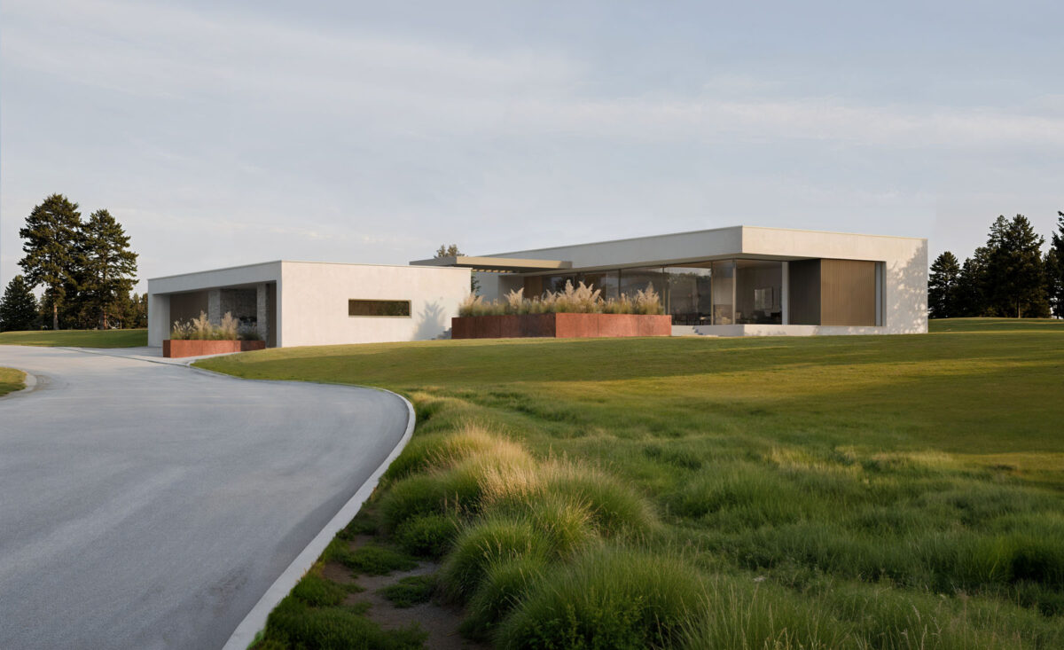 Am Ortsrand von Oberviechtach entsteht ein neu geplantes Einfamilienhaus mit einem vorgelagerten Nebengebäude, das eine Garage, einen Geräteraum und einen Carport umfasst. Das Flachdachensemble fügt sich trotz seiner eingeschossigen Bauweise harmonisch in seine Umgebung ein. Der geschützte Außenbereich zwischen Wohnhaus und Nebengebäude bietet eine hohe Aufenthaltsqualität und integriert eine Außenküche. Ein Lamellendach sorgt für zusätzlichen Witterungsschutz im Sitzbereich der Terrasse. Um Erdbewegungen auf ein Minimum zu reduzieren, wird ein Teil des Hauses in den Hang eingebettet.